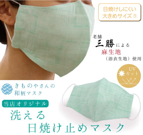 【超目玉価格】マスク 洗えるマスク 日焼け防止 UVカット ミントグリーン 幾何学 三勝 注染 麻 浴衣生地 大きめ 抗菌 消臭 Catlight 汚れ分解 夏 洗える 在庫あり 日本製 耳ゴム 国内発送 個包装 女性 男性 大人