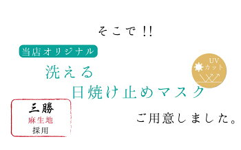 日焼け、マスク焼けしたくない人の為の夏用マスク 老舗・三勝の浴衣生地を使い、見た目が涼しげ。